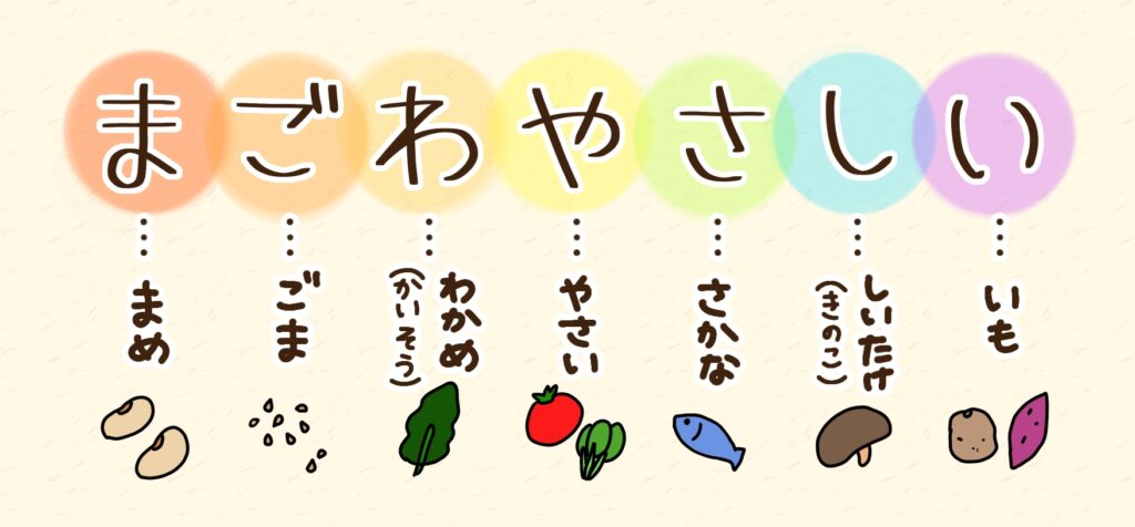 献立を立てるときも「マゴハヤサシイ」を参考にしていただくと良いでしょう。